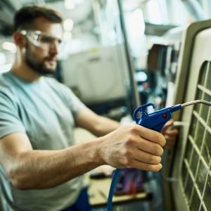 - Condensation: Le gaz chaud passe ensuite dans le condenseur, où il libère sa chaleur vers la source chaude (par exemple, l’air intérieur de la maison), condensant le fluide frigorigène en liquide.